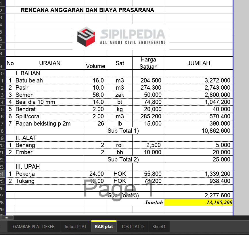 Beranda MANAJEMEN DAN METODE KONSTRUKSI RAB RAB Gorong-gorong Plat