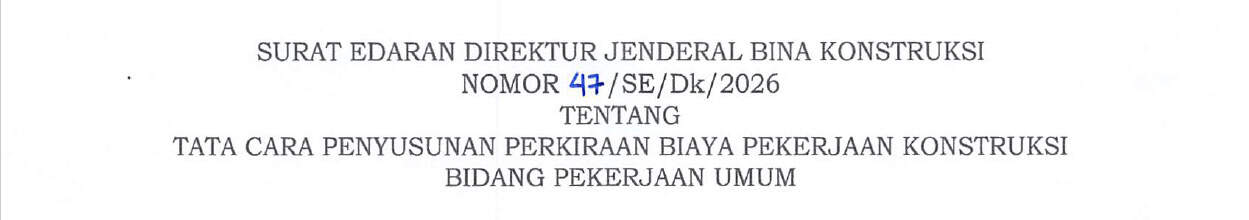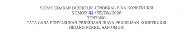 SE BINKON NO 47/SE/Dk/2026 Tentang Tata Cara Penyusunan Perkiraan Biaya Pekerjaan Konstruksi Bidang Pekerjaan Umum dan Perumahan Rakyat