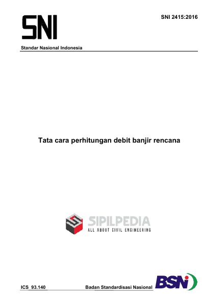 Beranda NSPK SNI SNI 2415:2016 Tata Cara Perhitungan Debit Banjir Rencana NSPKSNI SNI 2415:2016 Tata Cara Perhitungan Debit Banjir Rencana Penulis sipilpedia - 13 Februari 2026 7 0 FacebookTwitterPinterestWhatsApp Detail Penulis : Penerbit : Bahasa : Halaman : 88 hal (pdf) Ukuran : 7.1 mb DOWNLOAD Konten berikutnya khusus bagi buyer yang telah membeli Premium Membership Daftar disini