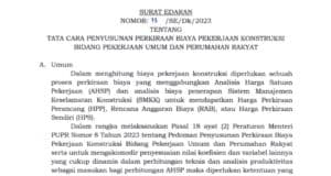SURAT EDARAN NO 73/SE/DK/2023 TENTANG TATA CARA PENYUSUNAN PERKIRAAN BIAYA PEKERJAAN...