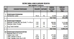 RENCANA ANGGARAN BIAYA BAK SAMPAH 7.5x5x1m