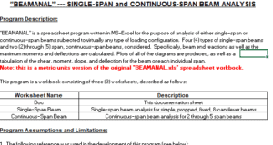 BEAMANAL METRIC- SINGLE – SPAN and CONTINUOUS – SPAN BEAM ANALYSIS