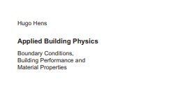 Applied Building Physics_Boundary Conditions, Building Performance and Material Properties