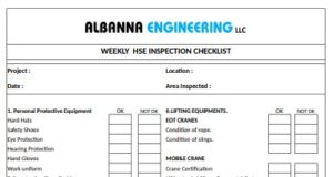 WEEKLY HSE INSPECTION CHECKLIST