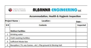 Accommodation, Health & Hygienic Inspection Checklist