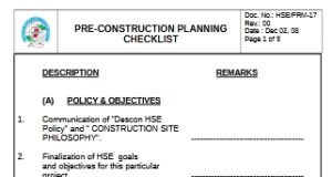 PRE-CONSTRUCTION PLANNING CHECKLIST