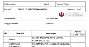 Form Ceklis Pemeriksaan Excavator