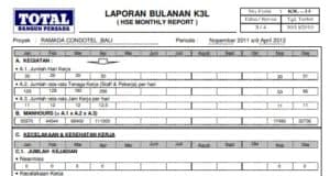 CONTOH LAPORAN BULANAN K3L ( HSE MONTHLY REPORT )