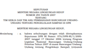 KEPUTUSAN MENTERI NEGARA LINGKUNGAN HIDUP NOMOR 295 TAHUN 2007 TENTANG TIM...