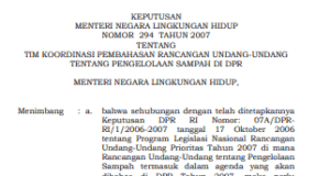 KEPUTUSAN MENTERI NEGARA LINGKUNGAN HIDUP NOMOR 294 TAHUN 2007 TENTANG TIM...