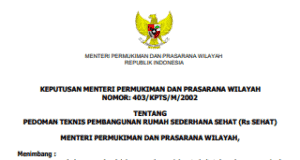 KEPUTUSAN MENTERI PERMUKIMAN DAN PRASARANA WILAYAH NOMOR: 403/KPTS/M/2002 TENTANG PEDOMAN TEKNIS...