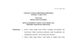 UNDANG-UNDANG REPUBLIK INDONESIA NOMOR 1 TAHUN 1970 TENTANG KESELAMATAN KERJA