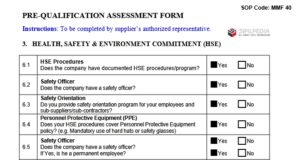 DAFTAR PERTANYAAN KESELAMATAN, KESEHATAN KERJA DAN LINGKUNGAN UNTUK VENDOR