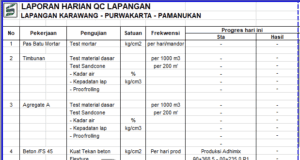 LAPORAN HARIAN QC LAPANGAN