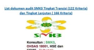 List Dokumen Audit SMK3 Tingkat Transisi (122 Kriteria) dan Tingkat Lanjut...