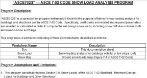 “ASCE702S”ASCE 7-02 CODE SNOW LOAD ANALYSIS PROGRAM