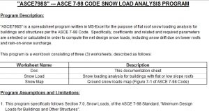 “ASCE798S” ASCE 7-98 CODE SNOW LOAD ANALYSIS PROGRAM