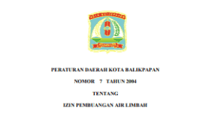 PERATURAN DAERAH KOTA BALIKPAPAN NOMOR 7 TAHUN 2004 TENTANG IZIN PEMBUANGAN...