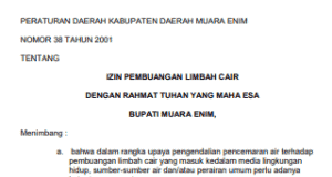PERATURAN DAERAH KABUPATEN DAERAH MUARA ENIM NOMOR 38 TAHUN 2001 TENTANG...