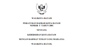 PERATURAN DAERAH KOTA BATAM NOMOR 5 TAHUN 2001 TENTANG KEBERSIHAN KOTA...