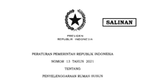 PERATURAN PEMERINTAH REPUBLIK INDONESIA NOMOR 13 TAHUN 2O2I TENTANG PENYELENGGARAAN RUMAH...