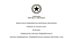 PERATURAN PEMERINTAH REPUBLIK INDONESIA NOMOR 38 TAHUN 2007 TENTANG PEMBAGIAN URUSAN...
