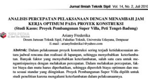 ANALISIS PERCEPATAN PELAKSANAAN DENGAN MENAMBAH JAM KERJA OPTIMUM PADA PROYEK KONSTRUKSI