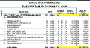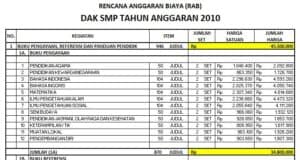RAB Pengadaan Buku SMP Dak 2010