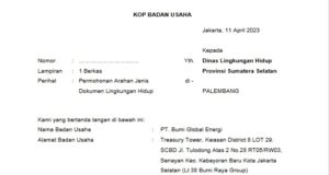 Surat Permohonan Arahan Dokumen Lingkungan Hidup untuk Rencan Kegiatan Pembangunan PLTA