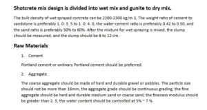 Shotcrete mix design is divided into wet mix and gunite to...