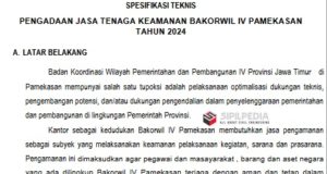 SPESIFIKASI TEKNIS PENGADAAN JASA TENAGA KEAMANAN BAKORWIL IV PAMEKASAN TAHUN 2024