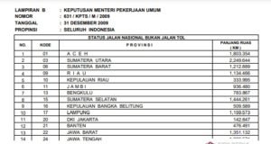 KEPUTUSAN MENTERI PEKERJAAN UMUM TENTANG PANJANG JALAN NASIONAL BUKAN TOL