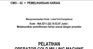 PELATIHAN OPERATOR COLD MILLING MACHINE “PEMELIHARAAN HARIAN”
